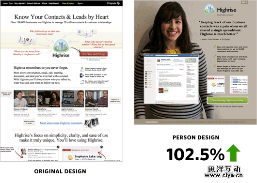 37Signals开始在他们的登陆页面使用他们客户的照片,并使转化率提升了。