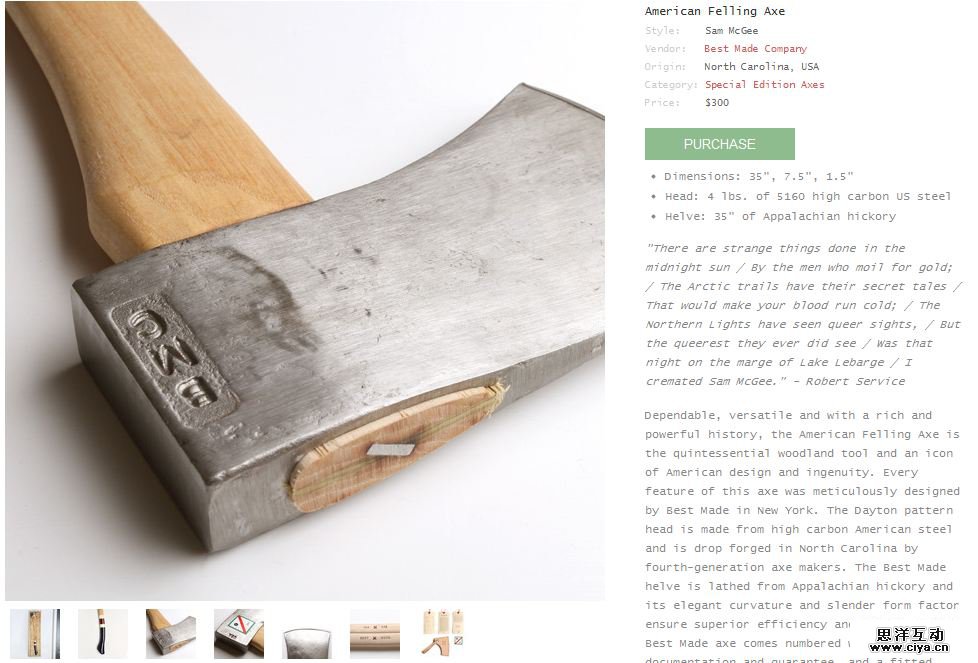 比仅仅一个单独斧子图片更好,不是吗?你全方位感受到斧子这个产品。他们还想办法在这些照片中展示产品特色的同时赋予品牌的推广。的确是个不错的范例。