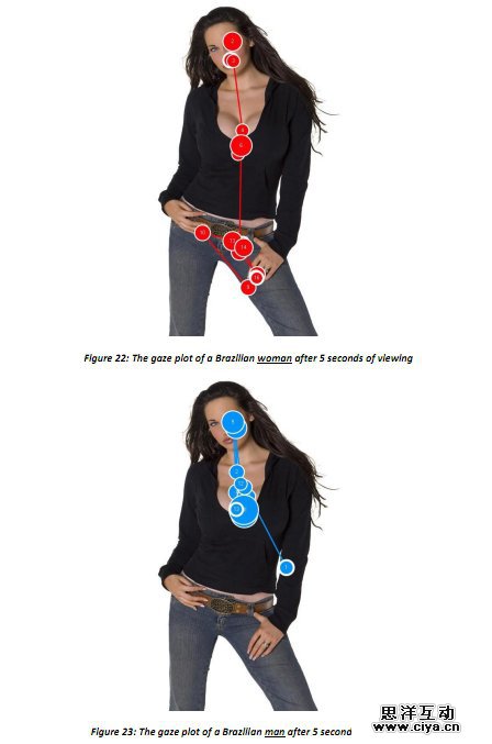 Miratech做了眼动跟踪研究,测量男人和女人怎么看性感年轻女性的照片。