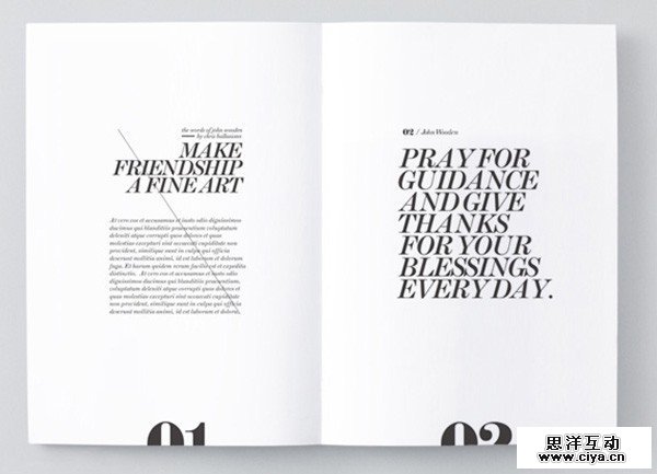 从正文中摘出一段文字放大,并用作一种分割和强调的视觉元素,呈现你认为重要的文字内容。在杂志的版面设计上非常常见。