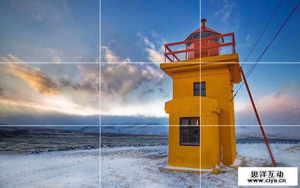 三分法理论,借助两横两竖将图片分割成为9个部分,交叉处为图片的重要部位,或者设计重心。