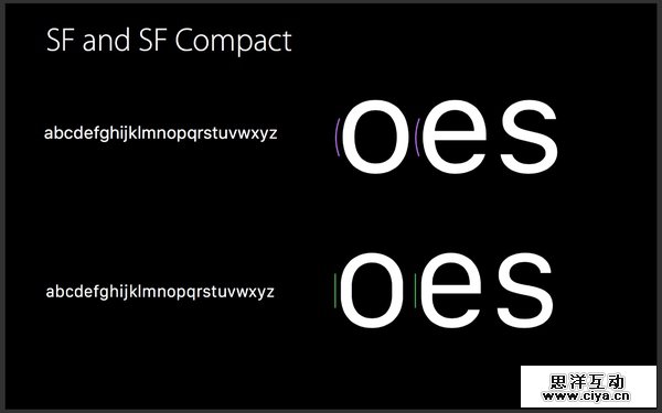这个比较特别的是 SF 字体包含了两个,分别为:SF-UI-Display 和 SF-UI-Text ,他们的差异主要是字体间距的不同,Text 的字体间距较大,再小的字体中更加易读。