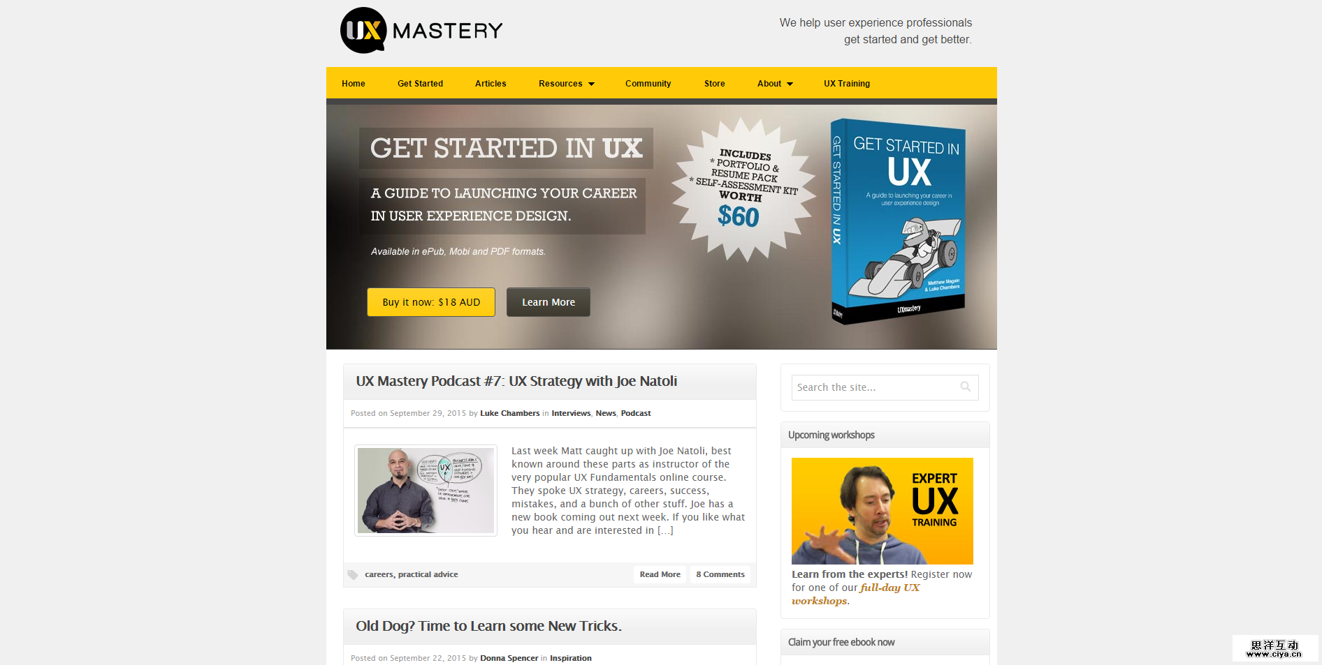 这是一个完全致力于用户体验设计的网站,你会在这里发现许多相关的资源,比如电子书、播客、课程、会议讨论、技术文档、工具等等。另外,UX Mastery 还有论坛,你可以在那里同不同的设计师一同探讨问题。