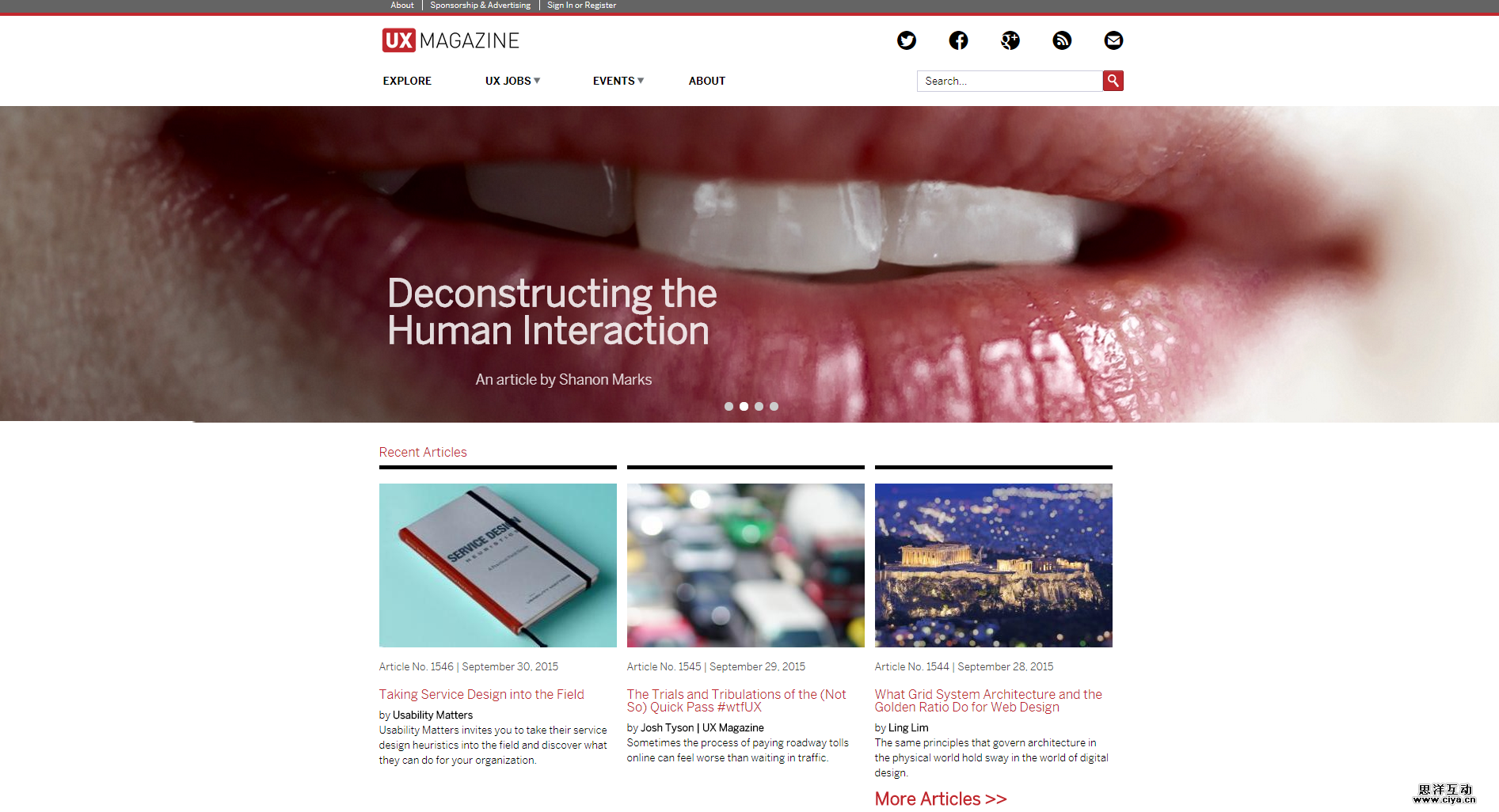 UX Magazine 更加专注于专业的用户体验设计,探讨用户体验设计相关的各个方面,比如情感化设计、可用性设计、如何移情以及故事的正确讲述方式等。此外你还可以在这里找到国际重大用户体验相关的会议、活动的信息,甚至工作。
