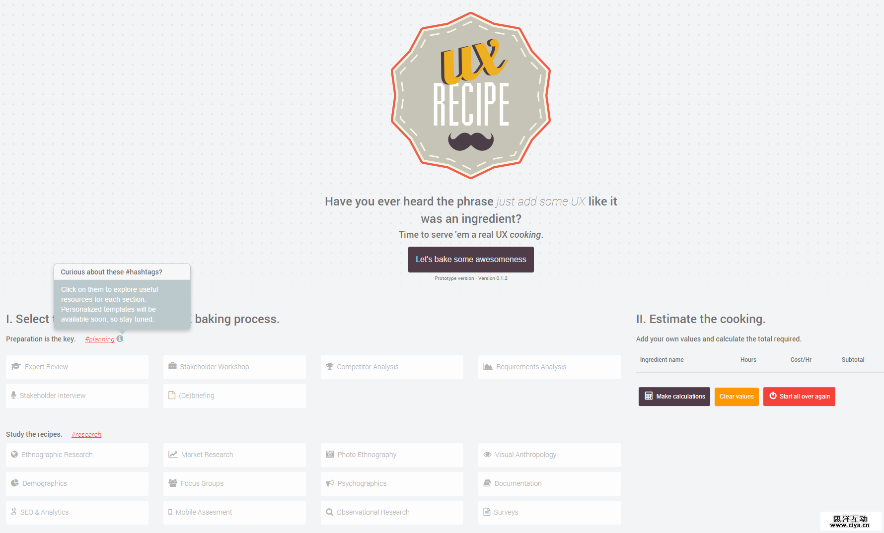 UX Recipe 是一个非常实用的用户体验设计清单,它详细分析了每个项目的具体部位帮你估算成本。