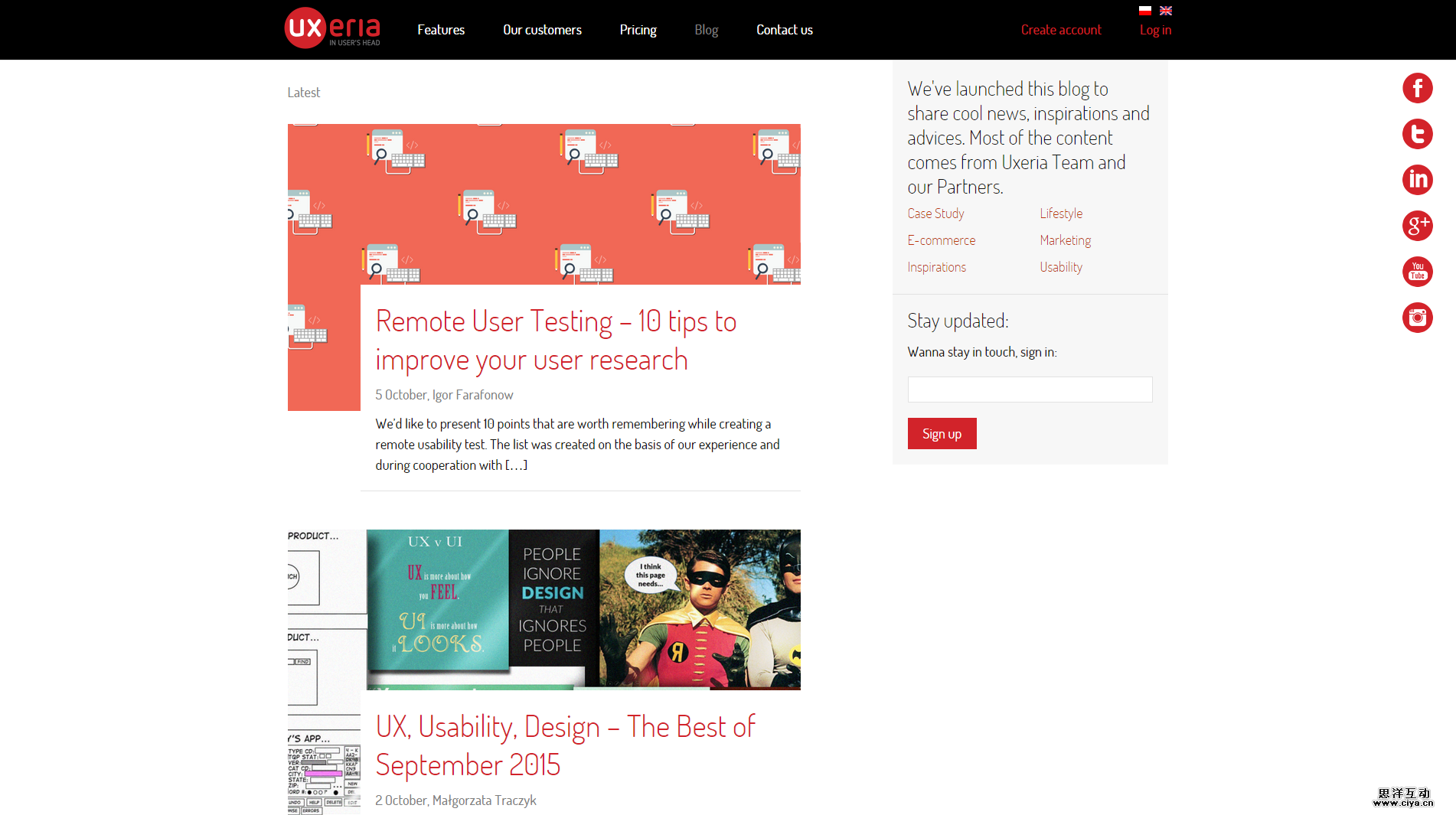Uxeria 可以帮你远程测试应用和网站的可用性。在Uxeria 的博客上,你会找到最好的可用性设计的相关内容,以及最好的案例研究。