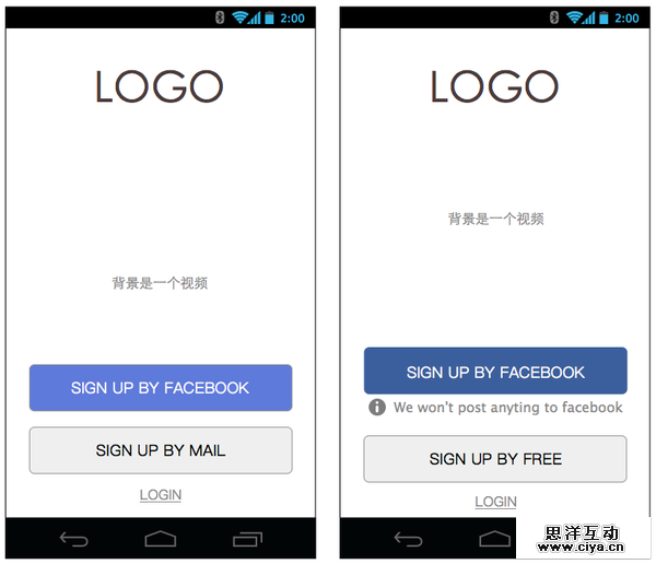 而改进按钮就更有趣了,首先我们怀疑海外用户担心隐私问题,在Facebook按钮旁边加上了隐私保证的文案,数据上升了1个点。将Sign up by mail 改成了 Sign up by free都能上升3%,甚至连 “使用Facebook登录” 的按钮颜色和Facebook一致都能带来转化的提升。