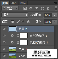 新建图层,填充颜色R178 G208 B232,然后把混合模式改为柔光,不透明度47%。