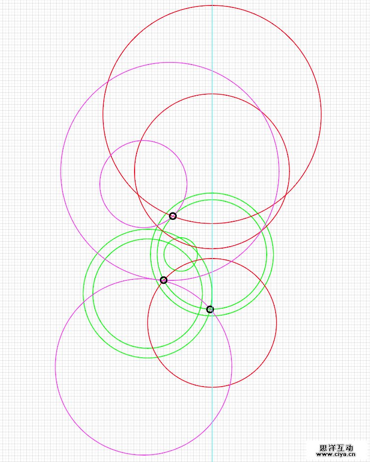 将复制的圆圈对第一次画的圆,居中对称对齐(如图所示)