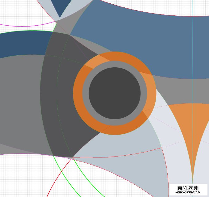 创建最终的三个圆(紫色):237 * 237像素,293 * 293像素和 117 * 117像素 ,如下图所示将其放置,黑色小圆圈显示仅供指导。