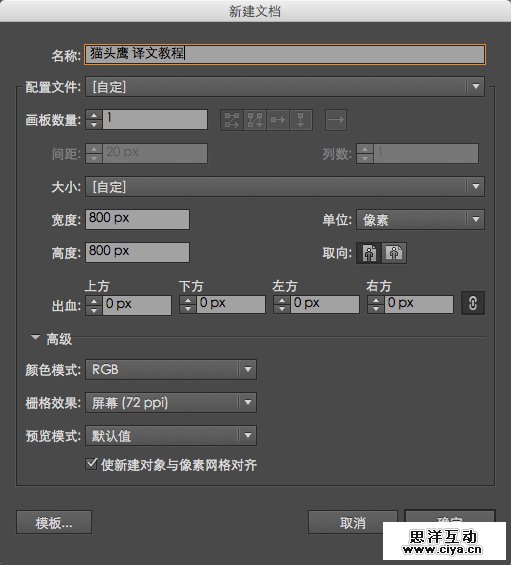 打开AI软件,COMMAND+N 创建800*800px 的画布