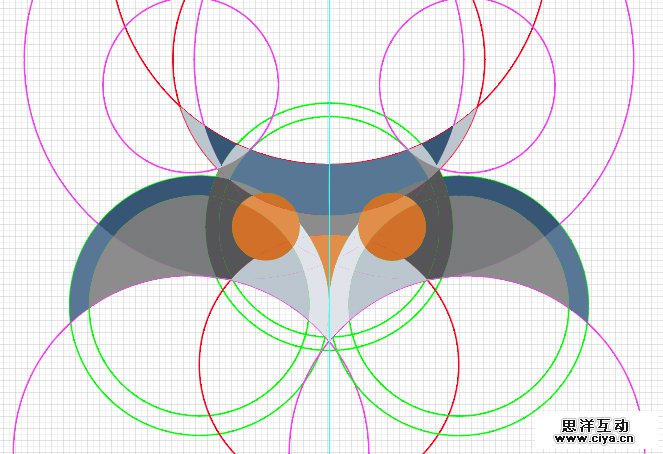 大圆圈的重叠给你的猫头鹰一个喙。