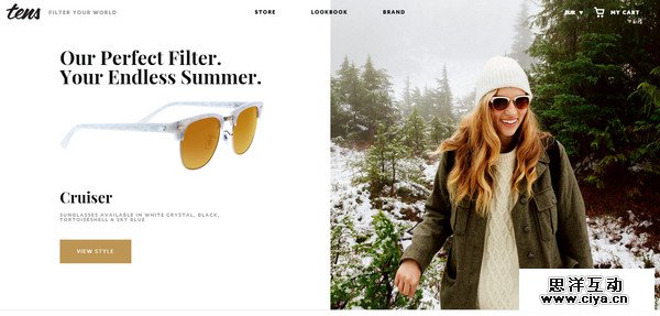Tenslife 也是一个采用了非传统式的页面布局的在线商店,其中精致而美观的细节保持了风格的一致性和。两栏式布局包含了所有有用的信息,不仅展示了产品的美妙之处,还让用户同时可以获取产品信息,虽然内容很多,但是一点都不凌乱。