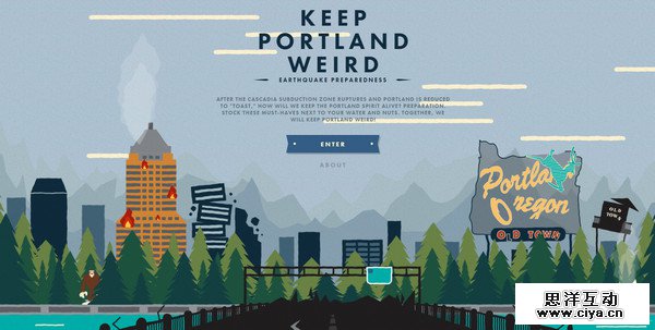 Keep Portland Weird 网页中充分运用了华丽的动态插画,这赋予页面以一个独一无二的动态外观,内容丰富的插画内容则让网站显得有趣又特别值得深入探索。