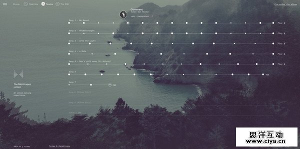 The DNA Project 是一个极为创新的音乐网站项目,它为用户提供了截然不同的音乐制作流程,时尚又不同凡响。每首歌都被划分为关键的音乐节点、音轨背后的故事和参与的音乐家等几个部分,这个项目让用户与音乐人们一同制作音乐。