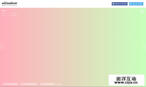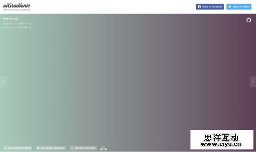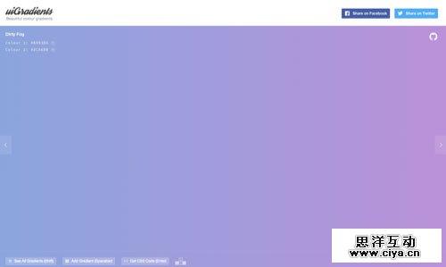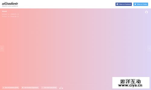 UIgradients 以分享美丽渐变色彩为主的分享站,里面接近上百种渐变配色方案,设计师可根据自己风格来选择搭配,此外我们还能直接获得对应渐变配色的CSS代码,相当方便,但要注意浏览器要兼容CSS3才行:)