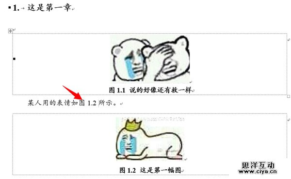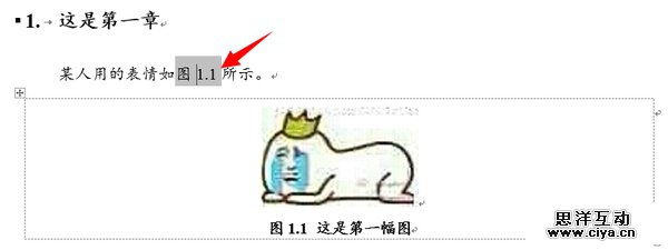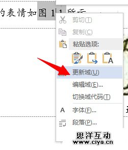 但是刚刚的引用并没有变化,还是 1.1。这是在该域,即“图1.1”上点击右键,在右键菜单中选择“更新域”。
