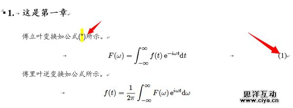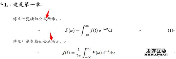 现在我们有了两个公式,现在需要在箭头处分别插入 (1) 和 (2)。