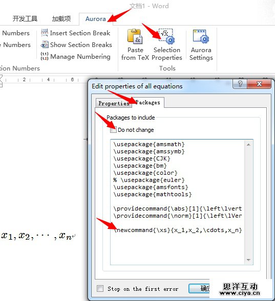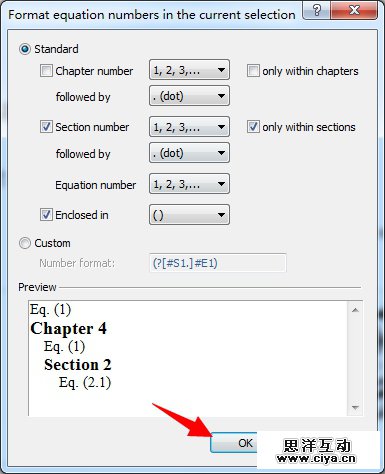 公式 (2) 的编号没变,这时候有两种办法,一种是前文介绍的 Ctrl + A 然后按 F9。另一种就是双击任意公式的编号,如上图中红色箭头指的编号。此时 Aurora 会弹出对话框,点击 OK,编号就正常了。