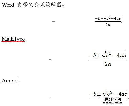 下图是二次方程求根公式的三种公式编辑器的对比图,好像都还好。