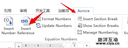 首先将光标放在要插入编号的位置,然后点击 Aurora 菜单下的 “Insert Reference” 按钮。
