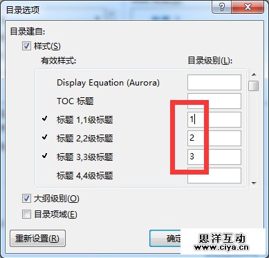 在弹出的对话框中去掉标题对应的数字,因为图目录只有图,其他的都不显示。