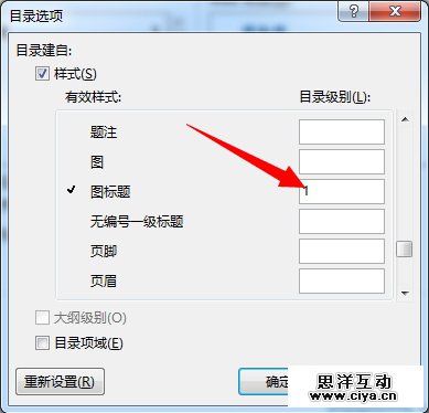 往下翻翻,找到图标题,然后设置目录级别为 1。