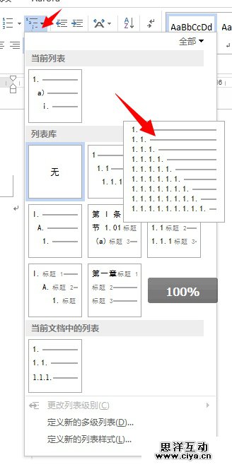 第一步:点击多级列表,为多级标题选择一种编号格式,我这里选的是第三种。
