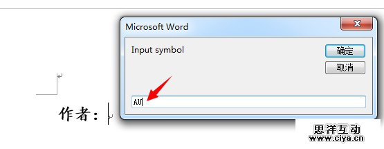 左边一列是变量的名称,右面一列是变量的值。用法就是点击 Word 工具栏上的”更新符号“按钮,Word 会读取所有的变量值。如果想在某处插入作者,点击”插入符号“按钮,在弹出的对话框中填 ”AU“,然后点击确定,如下图所示。