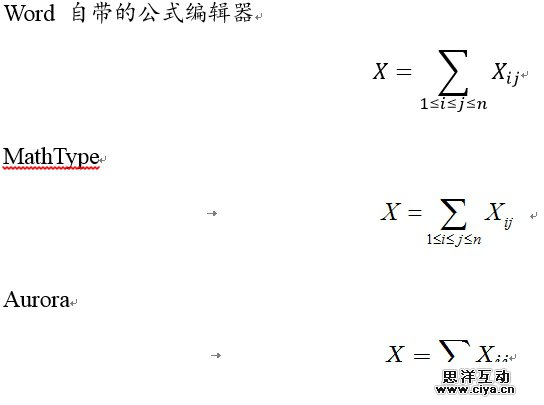 Aurora 自带个微型的 TeX 系统,原理就是将你输入的公式利用 TeX 进行编译,然后将产生的结果插入到 Word 中。所以你要用 Aurora 输入公式,需要先了解一下 LaTeX 的公式输入。关于这方面的内容可以参见《一份不太简短的 LaTeX 2ε 介绍》中的第三章。