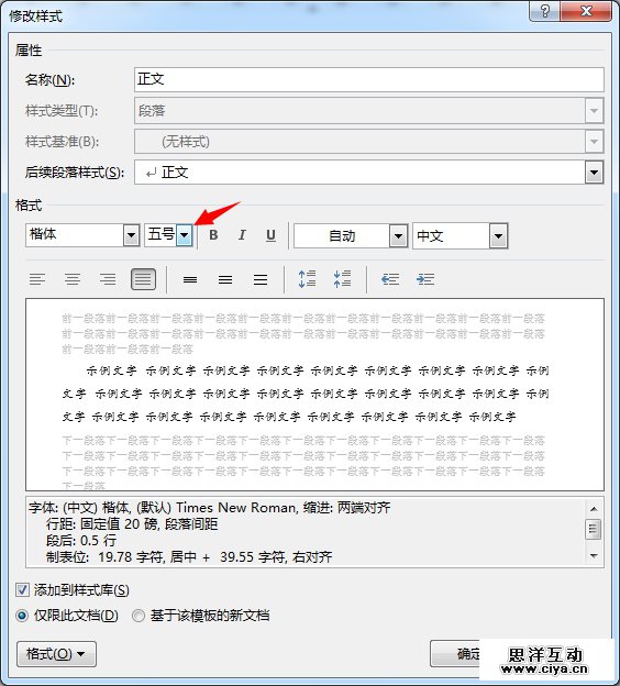在弹出的对话框中,将字体改成五号字体,点击确定,如下图所示。