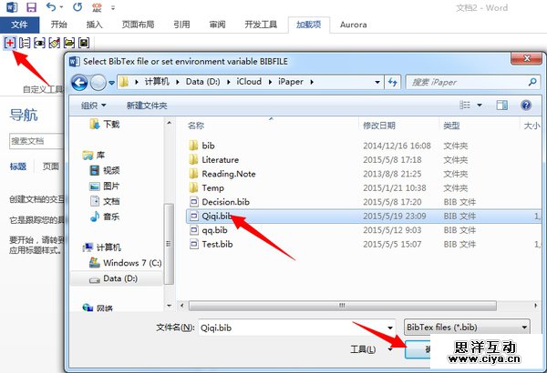 这里以 JabRef 为例,说明如何向 Word 中插入参考文献。插件使用的是 BibTeX4Word。安装后,Word 的加载项中会多出一些按钮。