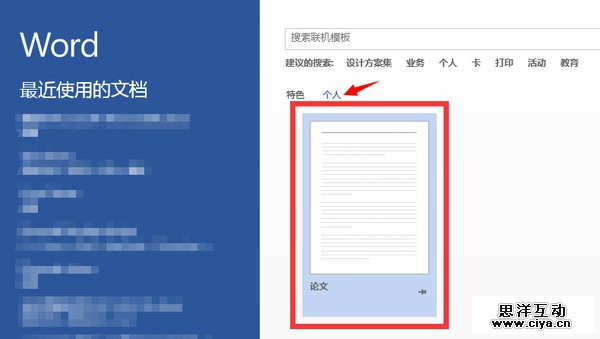 以后再打开 Word 时,可以在“个人”模板中找到该模板,如下图所示。