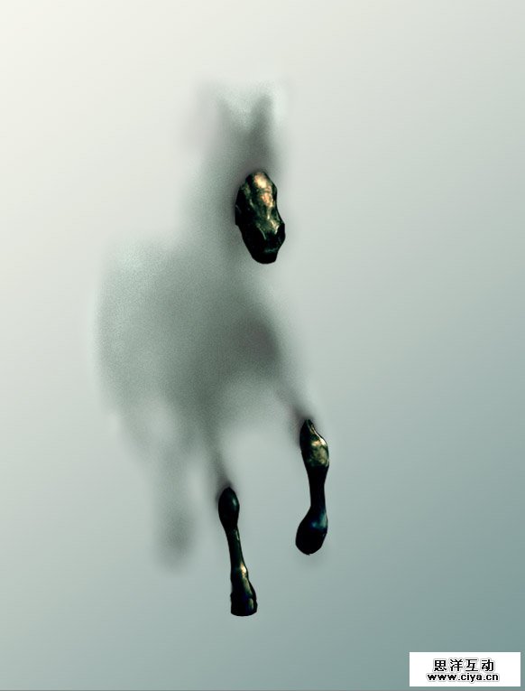 六、将暴露在毛玻璃之外的部分从素材图中抠出来,并执行 去色-拉低曲线-色彩平衡(由于原来是白马,处理成暗色之后失真,干脆强调金属感)