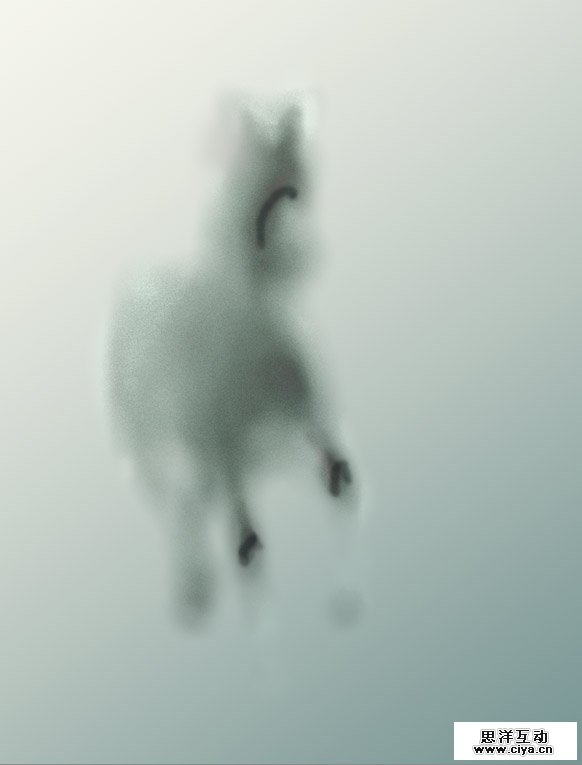 七、新建一个图层,用画笔勾勒马和毛玻璃的交界线,以便形成过渡效果。