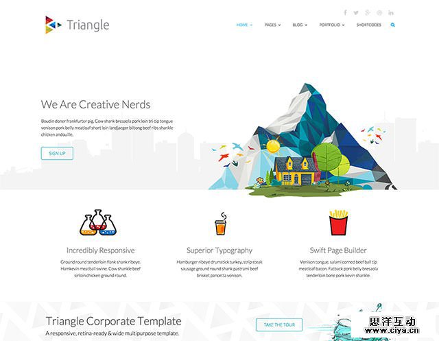 一个带有手绘元素的网站模板,适合工作室、服务类型的行业。还有blog页面,元素也很丰富。