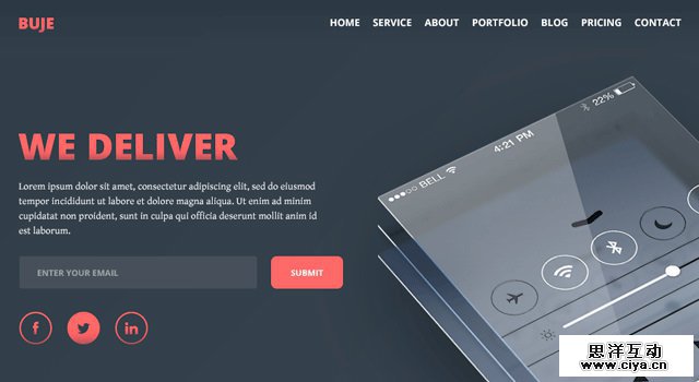 Buje很酷的一个单页网站模板,带有页面滚动动画,当浏览网页时,向下滚动页面,而页面的的元素会带动画的形式出现,这类设计是目前比较流行的趋势。