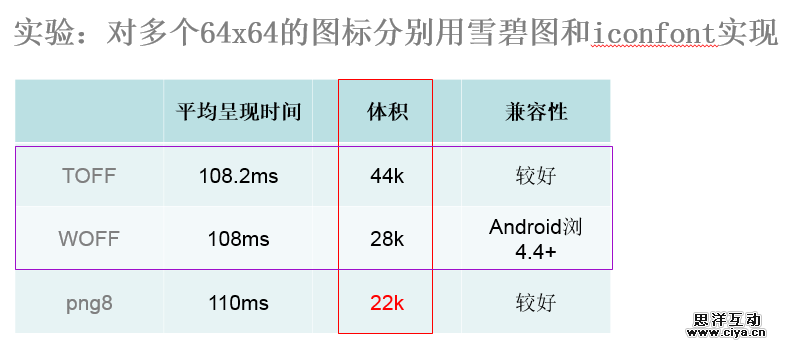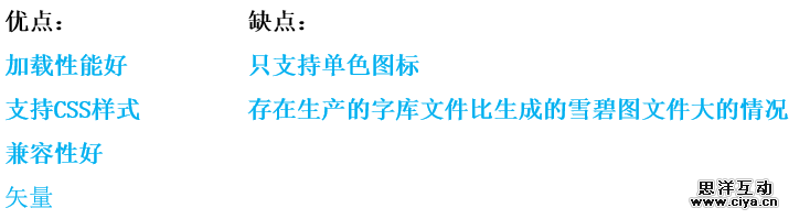 对于大图片,iconfont并不比雪碧图好,建议单侧小尺寸图标才使用iconfont.