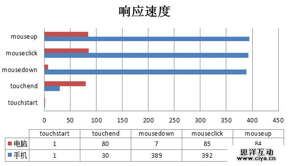 在移动端请适当使用touchstart,touchend,touch等事件代替延迟比较大的Click 事件。Click之所以慢是因为mousedown导致的: