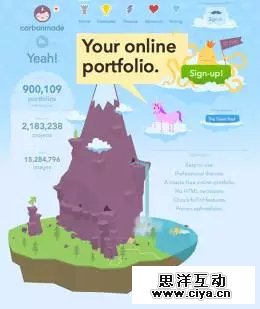 当你把实打实的用户体验和有趣的颜色以及卡通结合起来,会发生什么?你会得到Carbonmade,一个让建站小白轻松无痛苦地制作网络作品集的网站。