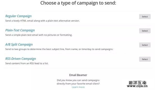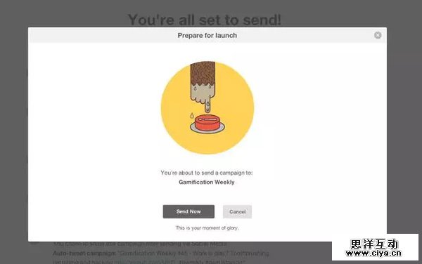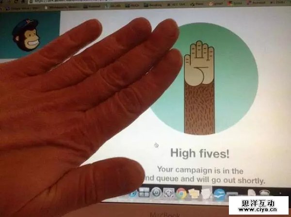 不混乱的界面、直截了当的选择和多选的对话形式,把复杂的操作归纳为一个简单且人性化的体验。MailChimp在你成功发送一组邮件之后,还设计了一个好玩的击掌屏显。这是一个令人印象深刻的体验,一些用户甚至一边击掌一边哈哈大笑。