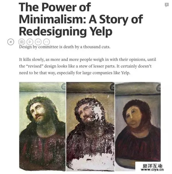 虽然界面极其简介,但通过设置悬停和隐藏,Medium给用户提供了所有必要的选择(上传图片/视频,插入内容等)。不像传统的博客平台体验给人感觉更多的是「内容管理模式」,Medium把写作功能和上传功能创造性地结合在一起。