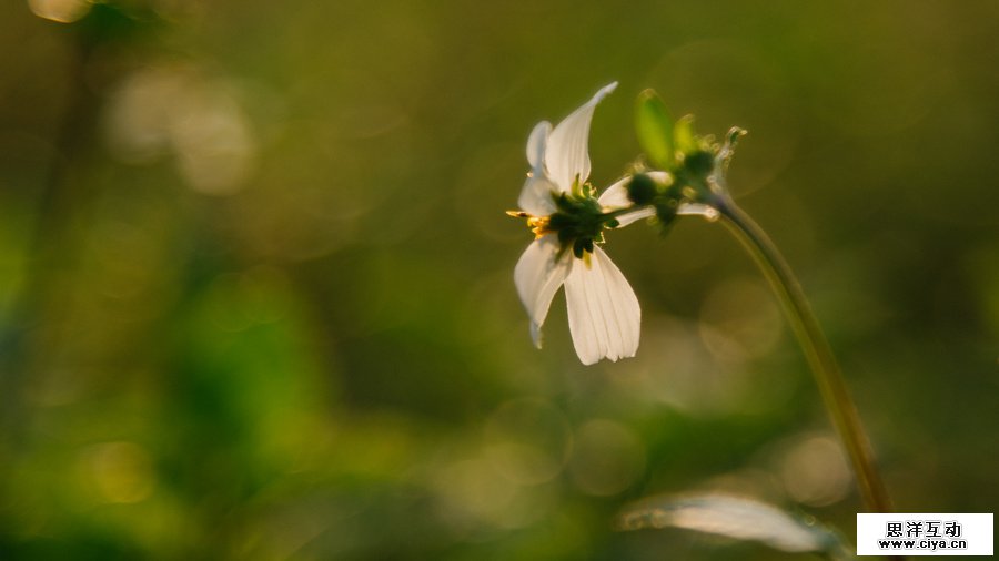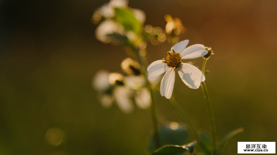 找到草丛中的一些小花,放低视角,逆光拍摄。