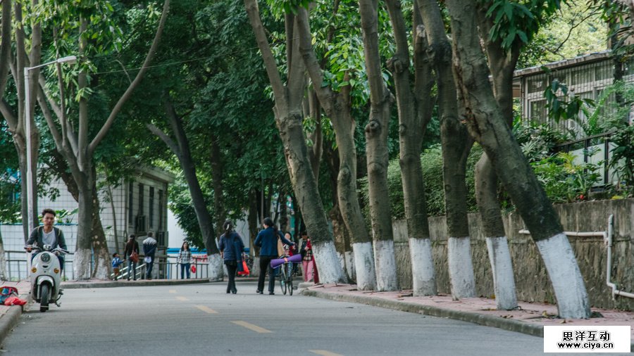 华农园林里的一条小路,这种场景如果有大雾或者萤火虫一定非常漂亮,正巧后面驶来了一辆自行车,稍微等待下,给画面增加一些生气。