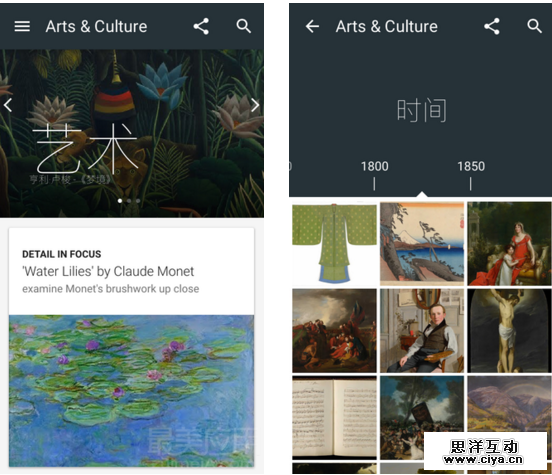 艺术与设计是永远不可分割的两个元素,Art & Culture 是 Google 利用文化学院项目的数据库推出的 Webapp。它囊括了艺术、历史、奇观三大版块,每个版块里都有艺术品的超高清视图及博物馆和名胜古迹的 360° 内景。那些精美的艺术品一定会给你带来设计上的启发。