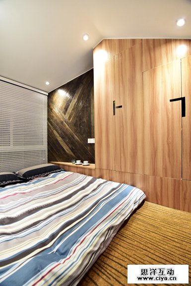 E:通过狭长陡峭又蜿蜒的楼梯通往二层半的卧室为邻居阿姨和儿子的卧室,空间不足。