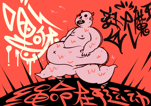 五四青年节涂得一张,那段时间工作室楼下多了很多和尚化缘… 手拿一小牌,