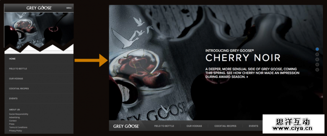 下面是一些处理响应式导航比较流行的技巧,由于下述几种导航方式还没有约定俗成的叫法,所以大家可以结合案例网站来理解他的实际用法:
