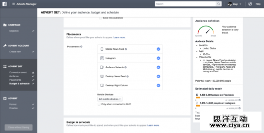 最终,在考虑预算和进度部分的时候,你需要考虑广告的具体花费以及何时让你的广告执行上线。