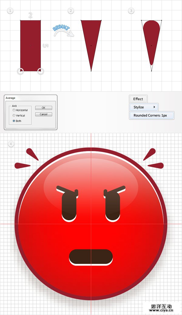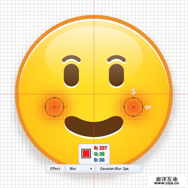现在,让我们添加一个情绪的脸。 首先,重新启用对齐网格,然后选择矩形工具(M),创建两个48 × 8px形状和一个12 px的形状,然后它们如图所示。